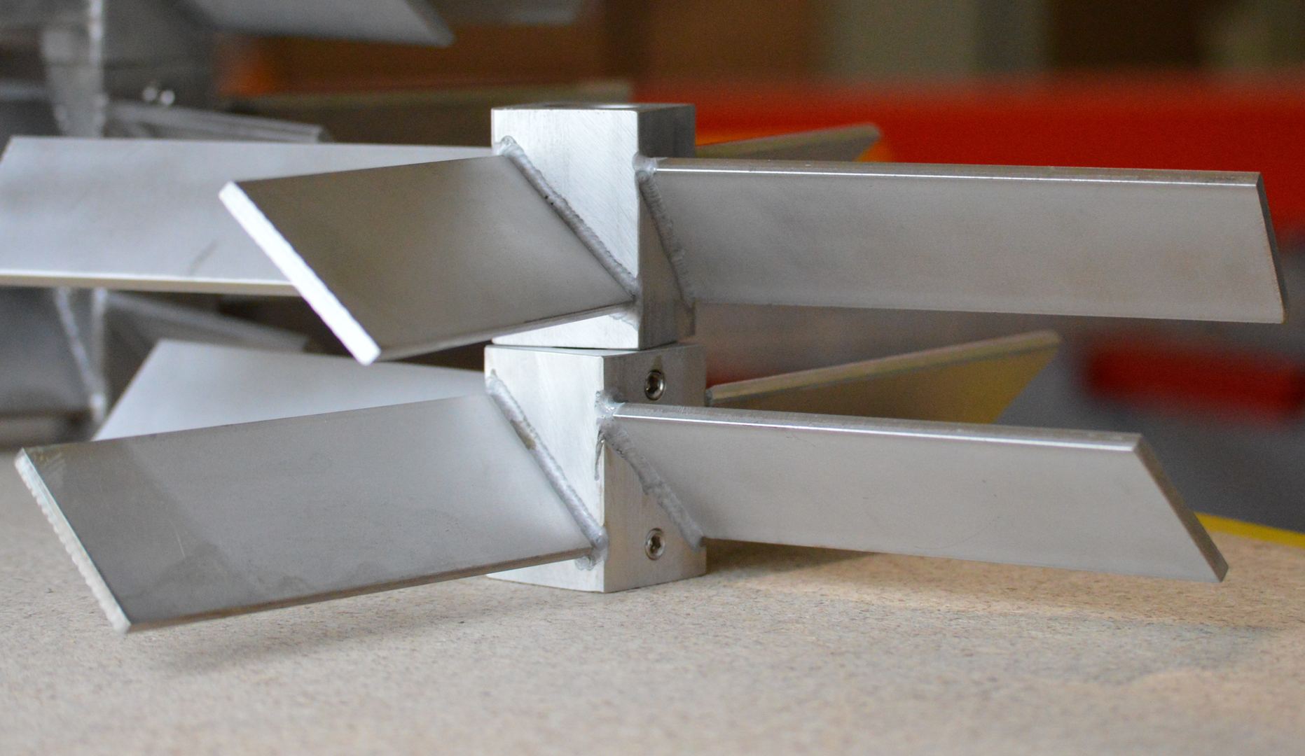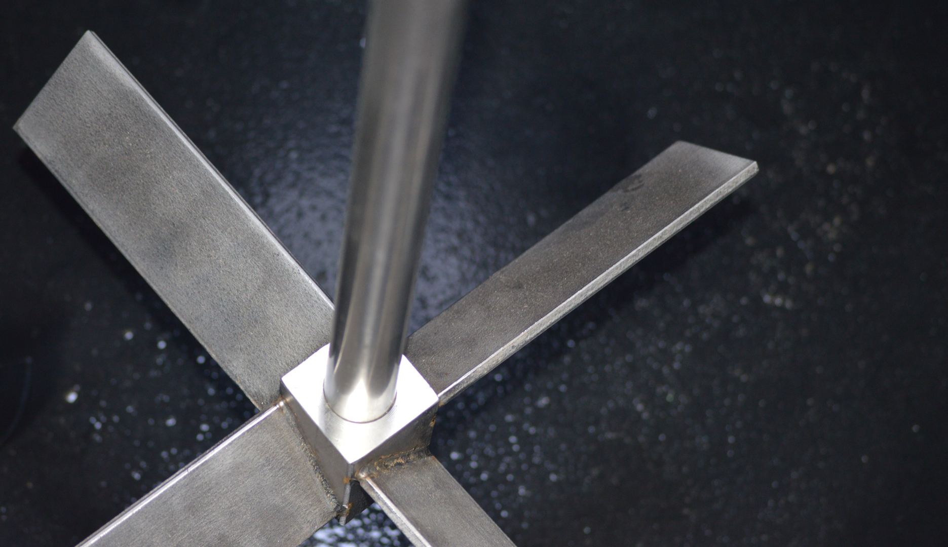 Árbol de diámetro y longitud variable en conformidad con las características dimensionales del sistema, siempre en acero inoxidable 316 y con fijación por acople desmontable al árbol del motor, lo que facilita el transporte y el mantenimiento. Hélices de doble fijación simple y geometría de 4 palas planas fijas en el bloque central, con entrada en el líquido con ángulo descendiente de 45º, proporcionando una baja fricción y una máxima eficiencia de agitación.