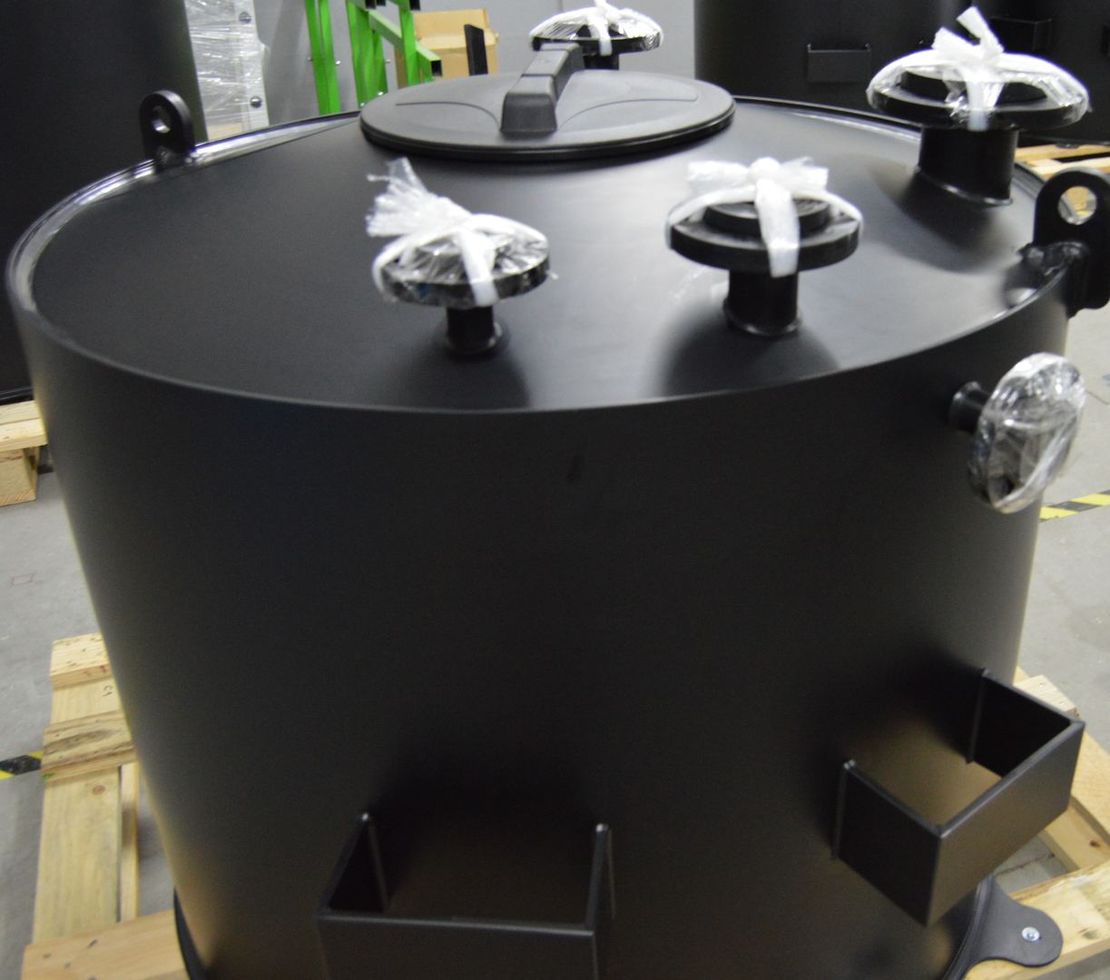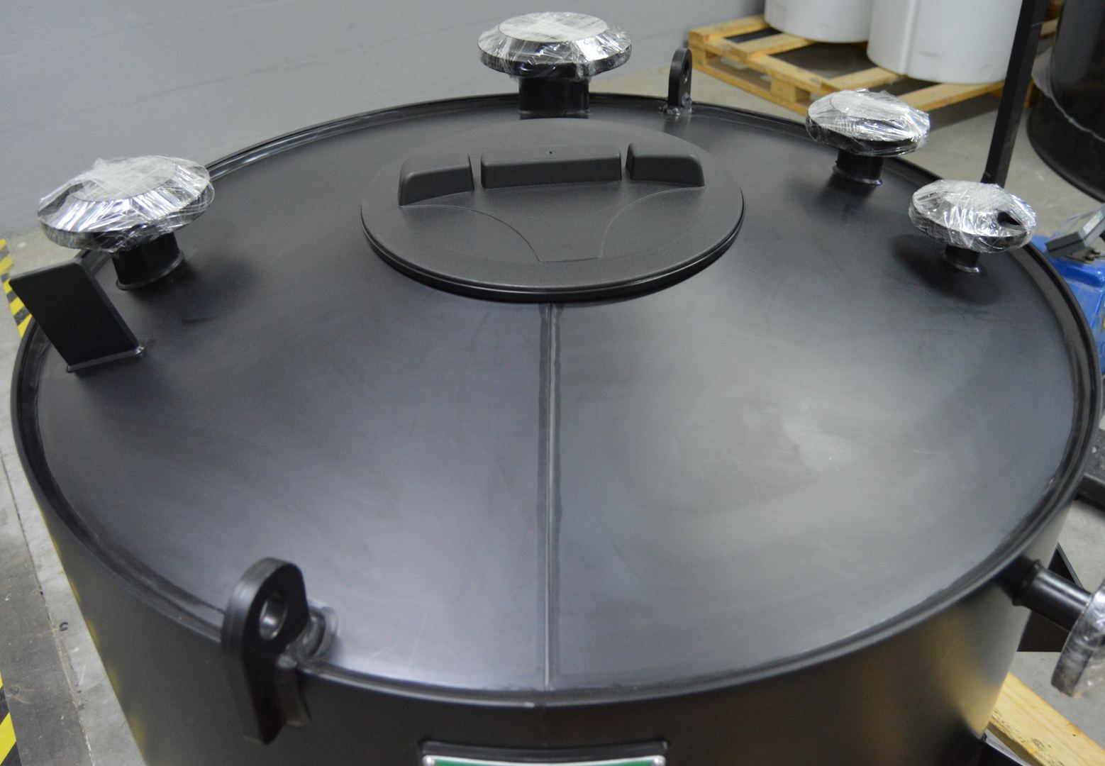 Elaborados a partir de placas de polietileno de alta densidad y soldadura por extrusión, son compatibles con la mayoría de los productos comerciales y suponen una más valía en la concepción y construcción de estaciones de almacenamiento y gestión industrial de productos químicos. Dimensionados con una sección vertical única, factores de seguridad y procedimientos de construcción determinados por la norma alemana DVS 2205 aportan una gran robustez a las paredes de estos depósitos, pero como contrapartida, el fondo cónico impide la construcción de unidades de gran diámetro, limitando así el volumen y la aplicabilidad de estos depósitos a volúmenes superiores a 10 m3. Concepción con entrada de hombre por la parte superior y conexiones hidráulicas de dimensión, posicionadas según convenga en la instalación.